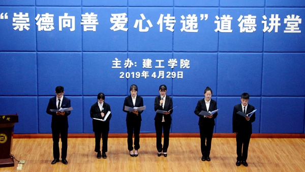 為進一步營造道德建設的濃厚氛圍,推進“知行合一”的道德實踐,4月29日晚,建工學院舉辦了以“崇德向善 愛心傳遞”為主題的道德講堂。建工學院師生400余人參加了活動。