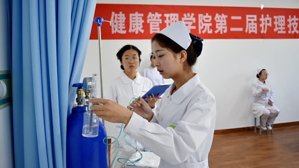 近日,我校舉辦第二屆護(hù)理技能操作大賽,大賽特邀商洛市中心醫(yī)院專業(yè)醫(yī)師和護(hù)士長擔(dān)任評(píng)委。教務(wù)處負(fù)責(zé)人及健康管理學(xué)院相關(guān)教師觀摩了比賽。