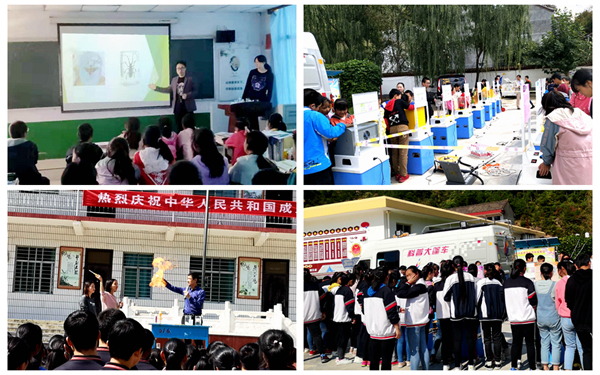 為扎實(shí)踐行2019年全國科普日“禮贊共和國、智慧新生活”活動(dòng)主題,進(jìn)一步推進(jìn)“雙百工程”結(jié)對(duì)幫扶丹鳳縣工作,我校師生繼9月11日在蔡川鎮(zhèn)九年制學(xué)校成功開展科普公益活動(dòng)后,9月26日,又將“科普大篷車”開進(jìn)丹鳳縣紅色革命熱土——庾嶺鎮(zhèn),為庾嶺中學(xué)300余名師生帶去了一場(chǎng)精彩的“鄉(xiāng)村流動(dòng)科技館”校園展演。