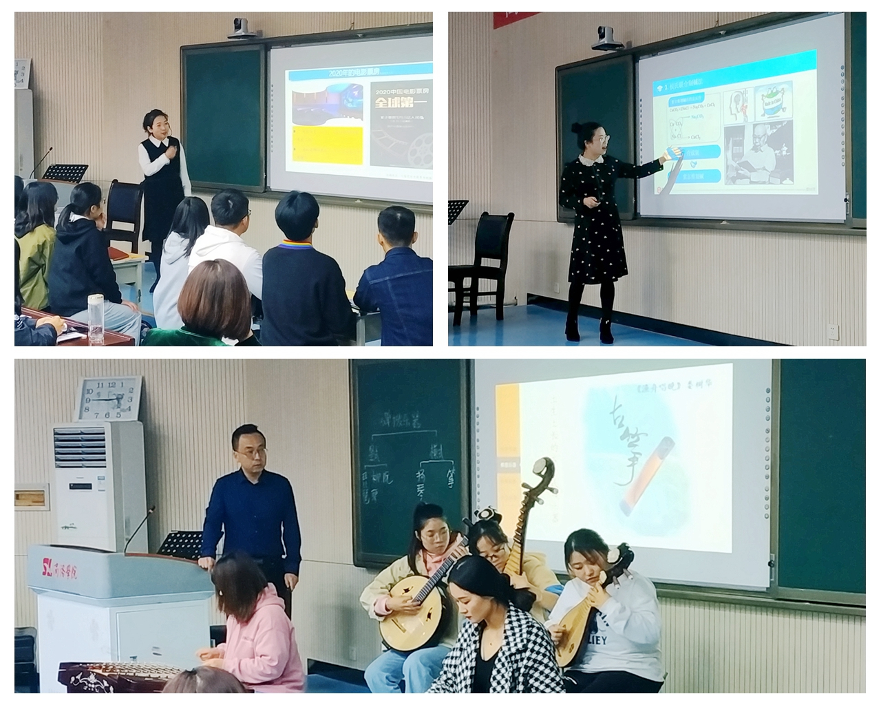 化材學(xué)院曹寶月、藝術(shù)學(xué)院寧兆卿、經(jīng)管學(xué)院黃荊晶3位教師分別以《純堿的工業(yè)制備與綠色化學(xué)》《中國民族樂器-彈撥樂器》《“后疫情時代”的中國電影產(chǎn)業(yè)政策創(chuàng)新》為題做了課程思政教學(xué)示范展示,在課堂講授中將專業(yè)課學(xué)習(xí)與德育滲透巧妙結(jié)合,在字里行間激發(fā)學(xué)生的愛國情、報國志,引導(dǎo)青年學(xué)生樹立正確的世界觀、人生觀和價值觀,塑造新時代大學(xué)生的科學(xué)思維、整體思維和創(chuàng)新思維。參加教學(xué)觀摩的教師紛紛表示受益匪淺,要努力提升課堂教學(xué)水平,把思想政治教育貫穿教育教學(xué)全過程,把教書育人內(nèi)涵落實于課堂教學(xué)的主渠道之中,為把學(xué)生培養(yǎng)成德智體美勞全面發(fā)展的社會主義建設(shè)者和接班人做出自己應(yīng)有的貢獻(xiàn)。