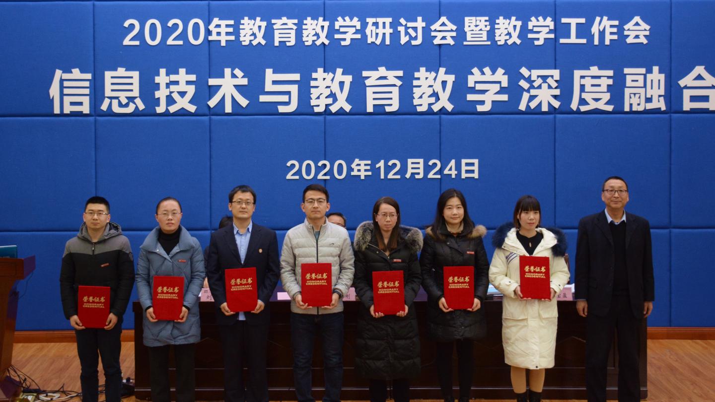 大會以“信息技術(shù)與教育教學深度融合”為主題,邀請陜西省教育廳教育信息化處處長李享陽、西北大學(陜西?。┙逃畔⒒l(fā)展研究中心副主任袁新瑞作了專題報告,教務處、馬克思主義學院、人文學院、建工學院負責人及數(shù)計學院、電信學院、經(jīng)管學院教師代表在大會上作了交流發(fā)言,大會還對2020年度教育教學工作中涌現(xiàn)出的先進集體和個人進行了表彰,并對2020年校級虛擬仿真實驗教學中心進行了授牌。