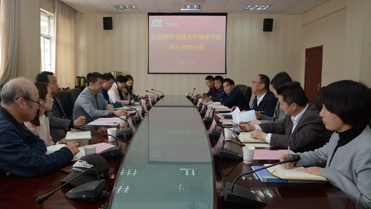 4月14日,西安交通大學(xué)城市學(xué)院副院長(zhǎng)朱旭帶領(lǐng)科研處、管理系相關(guān)負(fù)責(zé)人來(lái)我??疾旖涣鳌8毙iL(zhǎng)劉寶盈熱情接待了朱旭一行。雙方圍繞人才培養(yǎng)、教學(xué)管理及科研管理與服務(wù)工作進(jìn)行了座談。教務(wù)處、科技處、經(jīng)濟(jì)管理學(xué)院相關(guān)負(fù)責(zé)人參加座談。
