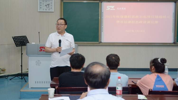 劉寶盈宣布比賽結(jié)果并做總結(jié)講話。他要求全體教師要以本次比賽為契機(jī),持續(xù)加強(qiáng)“課程思政”理論素養(yǎng),找準(zhǔn)實(shí)施“課程思政”教學(xué)的切入點(diǎn),錘煉“課程思政”教學(xué)技能,形成示范效應(yīng),激勵(lì)更多教師、更多課程積極開(kāi)展“課程思政”建設(shè)與創(chuàng)新,形成“門(mén)門(mén)有思政、課課有特色、人人重育人”的良好局面,使各類課程與思想政治理論課程同向同行,發(fā)揮“課程思政”潤(rùn)物無(wú)聲的作用,推動(dòng)我?!罢n程思政”建設(shè)不斷取得新成效。