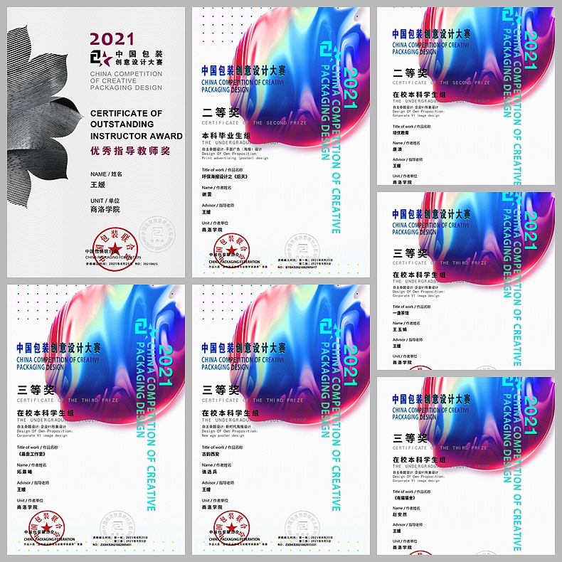 近日,由中國(guó)包裝聯(lián)合會(huì)舉辦的2021年中國(guó)包裝創(chuàng)意設(shè)計(jì)大賽圓滿(mǎn)結(jié)束,我校師生踴躍參賽,共獲得二等獎(jiǎng)2項(xiàng),三等獎(jiǎng)11項(xiàng),優(yōu)秀獎(jiǎng)14項(xiàng),1名教師獲得“優(yōu)秀指導(dǎo)教師”獎(jiǎng)。
