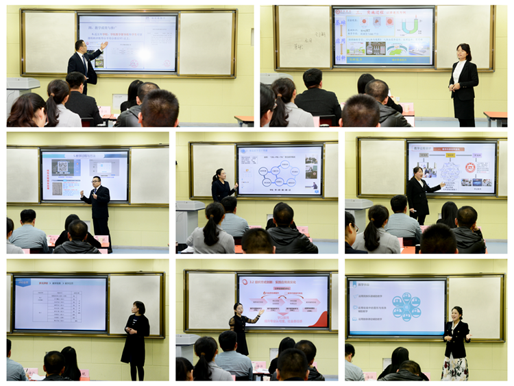 本屆大賽經(jīng)過院級初賽選拔,共選出正高組、副高組、中級及以下組8位教師進(jìn)入校級決賽。決賽成績由課堂教學(xué)實(shí)錄視頻、教學(xué)創(chuàng)新成果報(bào)告、教學(xué)設(shè)計(jì)創(chuàng)新匯報(bào)三部分按比例合成,得出競賽最終成績。校級決賽采取現(xiàn)場評審方式進(jìn)行,參賽教師結(jié)合教學(xué)大綱與教學(xué)實(shí)踐,分別進(jìn)行了12分鐘的教學(xué)設(shè)計(jì)創(chuàng)新匯報(bào)和8分鐘的專家問答交流。
