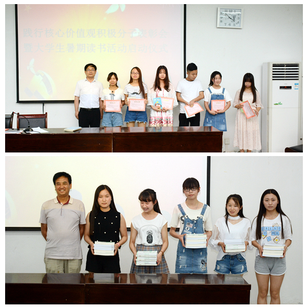 近年來(lái),思政部高度重視在學(xué)生中開(kāi)展社會(huì)主義核心價(jià)值觀教育,除積極在課堂教學(xué)中進(jìn)行理論講授和知識(shí)解讀外,還通過(guò)開(kāi)辦《思想報(bào)》、微信群以及“五微”教學(xué)競(jìng)賽等形式探索核心價(jià)值觀教育實(shí)踐教學(xué)新模式,并取得了豐富的實(shí)踐經(jīng)驗(yàn)、良好的教學(xué)效果和較高的社會(huì)評(píng)價(jià)。對(duì)核心價(jià)值觀積極踐行者進(jìn)行表彰并啟動(dòng)暑期讀書(shū)活動(dòng)不僅是對(duì)思政部核心價(jià)值觀教育成果的初步總結(jié),也是進(jìn)一步深化思想政治教育教學(xué)改革尤其是探索完善核心價(jià)值觀暑期實(shí)踐教學(xué)環(huán)節(jié)的創(chuàng)新舉措。