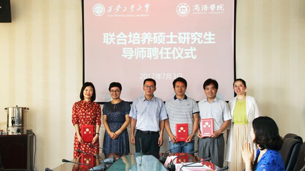 7月3日,我校舉行與西安工業(yè)大學聯(lián)合培養(yǎng)碩士研究生導師聘任儀式,聘任我校經(jīng)管學院教授賈長安,副教授王怡、劉龍龍為西安工業(yè)大學校外碩士研究生導師。校長范新會出席聘任儀式并講話。西安工業(yè)大學經(jīng)管學院院長張弘為受聘碩士研究生導師頒發(fā)聘書。副校長劉勇主持聘任儀式。