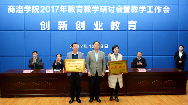 大會對我校2017年度優(yōu)秀教案及優(yōu)秀電子課件、教學技能競賽優(yōu)勝者、教學研討會優(yōu)秀論文、校級教學成果、第三屆“互聯(lián)網(wǎng)+”大學生創(chuàng)新創(chuàng)業(yè)大賽優(yōu)秀指導教師、教育教學優(yōu)秀組織單位進行了表彰,副校長魏書堂宣讀了表彰決定,出席大會的校領(lǐng)導為受表彰的集體和個人代表頒發(fā)了獲獎證書,并對電氣工程及其自動化專業(yè)虛擬仿真實驗教學中心、生物醫(yī)藥與食品工程學院分別進行了省級虛擬仿真實驗教學中心、省級創(chuàng)新創(chuàng)業(yè)教育改革試點學院的授牌。獲獎教師代表黃荊晶、獲獎單位代表人袁訓峰分別作了發(fā)言。