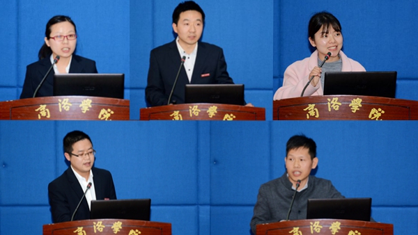 馬克思主義學院劉玲霞、化材學院劉彥峰、經(jīng)管學院李泓波、生物學院梁旭華、人文學院張文諾5位教師代表在大會上就教學實踐的體會進行了交流發(fā)言。