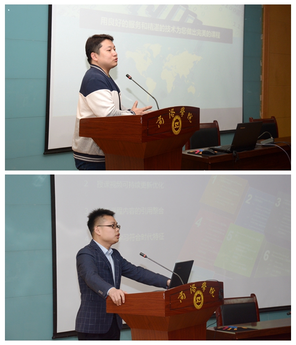 超星集團(tuán)陜西課程項目總監(jiān)龐健與超星集團(tuán)泛雅平臺產(chǎn)品經(jīng)理劉杰,先后以《微課課程建設(shè)》《微課時代的新一代網(wǎng)絡(luò)教學(xué)平臺--泛雅》為主題,結(jié)合微課制作的優(yōu)秀案例,分別從微課教學(xué)團(tuán)隊建設(shè)、編輯團(tuán)隊建設(shè)、微課制作前期中期的準(zhǔn)備工作、微課教學(xué)理念、泛雅平臺的特征等方面進(jìn)行了全面的講解,并通過“超星學(xué)習(xí)通”與參會教師互動。