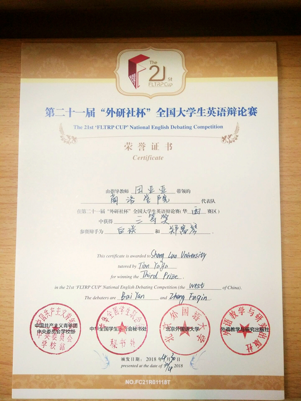 4月28日至30日,第二十一屆“外研社杯”全國大學(xué)生英語辯論賽華西賽區(qū)決賽在蘭州交通大學(xué)舉行。我校人文學(xué)院英語專業(yè)學(xué)生白琰、鄭富琴,以較強(qiáng)的英語思辯能力和扎實(shí)的口語水平榮獲三等獎。