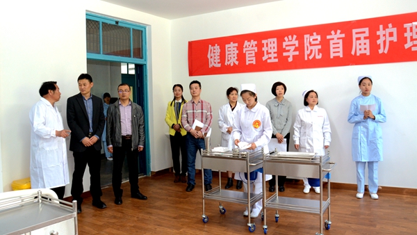 為紀(jì)念和慶祝“5.12”國際護(hù)士節(jié),弘揚南丁格爾精神,鞏固我校護(hù)理專業(yè)實踐操作技能,5月9日,我校健康管理學(xué)院舉辦首屆護(hù)理技能操作大賽。副校長劉勇出席大賽,教務(wù)處相關(guān)負(fù)責(zé)人、健康管理學(xué)院院長、護(hù)理專業(yè)全體教師參加了大賽。大賽還特邀商洛市中心醫(yī)院和商洛市中醫(yī)醫(yī)院3名主管護(hù)師擔(dān)任評委。