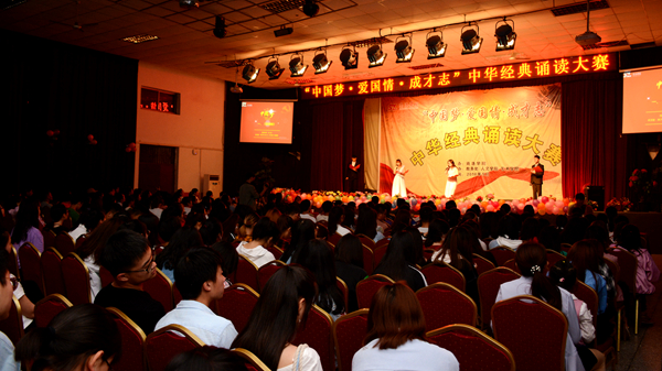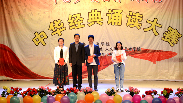 為深入學(xué)習(xí)貫徹習(xí)近平新時(shí)代中國特色社會(huì)主義思想和黨的十九大精神,全面落實(shí)《國家語言文字事業(yè)“十三五”發(fā)展規(guī)劃》,5月9日晚,由教務(wù)處、人文學(xué)院、藝術(shù)學(xué)院聯(lián)合承辦的“中國夢(mèng)?愛國情?成才志”中華經(jīng)典誦讀大賽在大學(xué)生活動(dòng)中心成功舉辦,副校長劉勇出席大賽。宣傳部、團(tuán)委、教務(wù)處、人文學(xué)院、藝術(shù)學(xué)院相關(guān)負(fù)責(zé)人參加活動(dòng)。