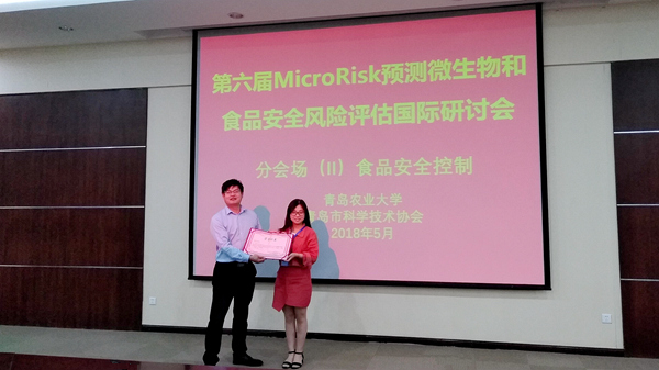 5月19日至20日,第六屆MicroRisk預測微生物和食品安全風險評估國際研討會在山東青島舉行。我校郭耀東博士指導的食品科學與工程專業(yè)2014級學生韓笑參加會議并在研究生論壇上以《陜西肉雞制品全產(chǎn)業(yè)鏈中沙門氏菌的分離鑒定階段性研究》為題作了學術(shù)報告。經(jīng)過專家評審,韓笑榮獲本次大會研究生論壇學術(shù)報告三等獎。