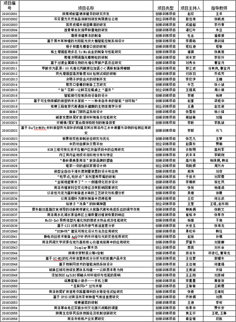 大學(xué)生創(chuàng)新創(chuàng)業(yè)訓(xùn)練計(jì)劃項(xiàng)目的申報(bào)和實(shí)施是我校實(shí)踐教學(xué)的重要環(huán)節(jié),學(xué)校高度重視,認(rèn)真落實(shí)教育部、省教育廳有關(guān)文件精神,嚴(yán)格執(zhí)行《商洛學(xué)院大學(xué)生創(chuàng)新創(chuàng)業(yè)訓(xùn)練管理辦法》,建立健全“大創(chuàng)項(xiàng)目”質(zhì)量監(jiān)控機(jī)制,規(guī)范優(yōu)化項(xiàng)目申報(bào)、立項(xiàng)、任務(wù)下達(dá)、中期檢查、結(jié)題等環(huán)節(jié),全力推動(dòng)該項(xiàng)工作有序開展。