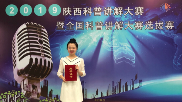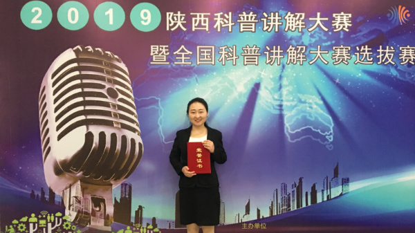4月18日上午,在2019年陜西科普講解大賽決賽暨全國科普講解大賽選拔賽上,我?;膶W(xué)院屈佳老師榮獲大賽優(yōu)秀獎,被授予“2019年陜西優(yōu)秀科普使者”榮譽稱號;健康管理學(xué)院李夢姣老師被授予“2019年陜西科普使者”榮譽稱號。