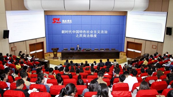 講座中,郭升選教授從全面依法治國是堅持發(fā)展中國特色社會主義的基本方略、新時代中國特色社會主義法治體系、新時代中國特色社會主義法治體系之民法、新時代中國特色社會主義法治體系之商法等幾個方面進行闡釋,并以西安奔馳車主哭訴維權(quán)等現(xiàn)實中的具體案例進行分析,引起同學(xué)們極大興趣,現(xiàn)場氣氛熱烈活躍。同學(xué)們紛紛表示從中學(xué)到了許多實用性的知識,獲益匪淺。
