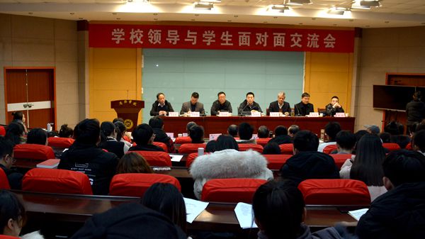 12月18日,我校舉辦學校領導與學生面對面交流會,圍繞學生關心、關注的焦點與重點問題展開交流,解答學生生活、學習與發(fā)展中的困惑與疑難問題,校黨委副書記彭虎軍出席,教務處、學生處、團委、保衛(wèi)處、后勤保障處、圖書館負責人,各學院黨總支書記、學工辦主任、全體輔導員、學生代表參加會議。