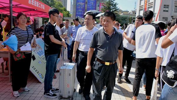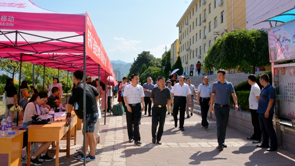 2018年我校面向28個?。ㄊ?、自治區(qū))錄取新生3593人。為了確保新生報到工作順利開展,9月4號下午,校長范新會、副校長魏書堂、黨委副書記彭虎軍、副校長劉勇帶領(lǐng)院長辦公室、宣傳部、校團委、教務(wù)處、學生處、財務(wù)處、后勤保障處、保衛(wèi)處、信息中心等相關(guān)職能部門負責人,深入各個迎新接待場點,檢查指導(dǎo)迎新工作。