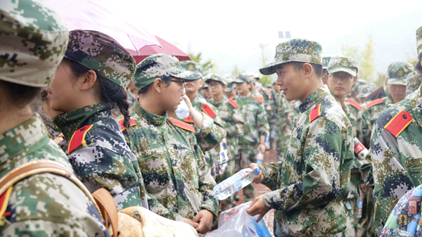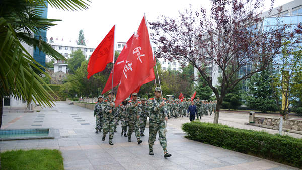 為確保此次拉練順利完成,學(xué)校做了周密的安排部署。保衛(wèi)處與地方交管部門協(xié)調(diào)配合,為行軍隊伍準備了指揮車、醫(yī)務(wù)車和保障車,在十字路口等處部署交警協(xié)助指揮交通;學(xué)生處、各二級學(xué)院黨總支負責人和新生輔導(dǎo)員全程跟隨行軍隊伍,重要路口警戒,重點關(guān)注掉隊人員,輔導(dǎo)員走在隊伍右后方,確保拉練活動圓滿完成。歷經(jīng)三小時后,所有新生順利返回北新街校區(qū)。在行軍過程中,同學(xué)們相互陪伴相互扶持,互相打氣加油,他們邁著堅定的步伐,氣勢昂揚地堅持到軍訓(xùn)拉練的終點。