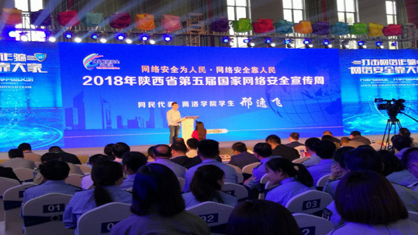 我校100余名師生參加開幕式,電信學(xué)院學(xué)生邢逸飛作為全省唯一的網(wǎng)民代表在開幕式上發(fā)言。邢逸飛說,自己是商洛學(xué)院的一名網(wǎng)絡(luò)評論員、學(xué)生記者,因?yàn)榻?jīng)常性參加學(xué)校組織的培訓(xùn)交流活動,所以對網(wǎng)絡(luò)宣傳和輿論引導(dǎo)的重要性有著切身的認(rèn)識。維護(hù)網(wǎng)絡(luò)安全,爭做中國好網(wǎng)民,大學(xué)生要發(fā)揮好“排頭兵”的作用。他在大會上代表大學(xué)生和廣大網(wǎng)民鄭重承諾:一要提高政治站位,積極參加學(xué)校和網(wǎng)信部門舉辦的形式多樣的網(wǎng)絡(luò)安全教育活動,帶頭在校園中宣傳網(wǎng)絡(luò)安全知識,讓“網(wǎng)絡(luò)安全為人民,網(wǎng)絡(luò)安全靠人民”的理念深入人心;二要堅(jiān)守網(wǎng)絡(luò)理性,明辨慎思,不人云亦云亂跟風(fēng),杜絕形形色色的網(wǎng)絡(luò)誘惑,保持客觀理性地接收信息、傳播信息,要慎重地轉(zhuǎn)發(fā),客觀地進(jìn)行評論,既不當(dāng)傳謠者,也不做“網(wǎng)絡(luò)暴民”;三要遵守網(wǎng)絡(luò)法規(guī),做網(wǎng)絡(luò)安全法的宣傳者,做網(wǎng)絡(luò)安全法的執(zhí)行者,做網(wǎng)絡(luò)安全法的捍衛(wèi)者,做網(wǎng)絡(luò)安全法的建設(shè)者;四要用網(wǎng)而不沉溺于網(wǎng)絡(luò),用青春傳播正能量,踐行社會主義核心價(jià)值觀,把自己鍛造成堪當(dāng)民族復(fù)興大任的時(shí)代新人。