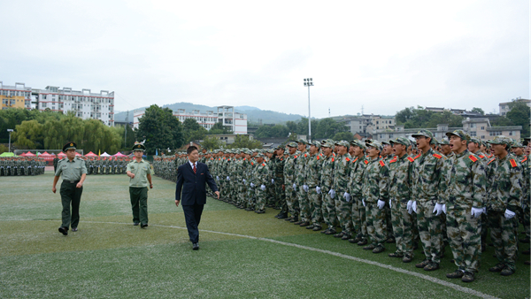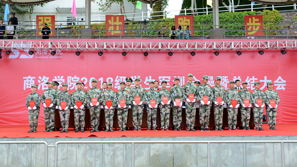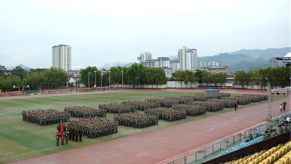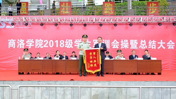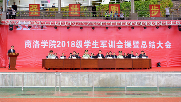 汗水書寫青春,磨練見證成長。9月20日,我校隆重舉行2018級學(xué)生軍訓(xùn)會操暨總結(jié)大會,檢閱2018級學(xué)生軍訓(xùn)成果,并對軍訓(xùn)中表現(xiàn)突出的先進(jìn)集體與先進(jìn)個(gè)人進(jìn)行表彰。校領(lǐng)導(dǎo)龍治剛、范新會、魏書堂、劉寶盈、劉勇,中國人民武警部隊(duì)商洛支隊(duì)副參謀長、軍訓(xùn)團(tuán)團(tuán)長呂喆少校,中國人民武警部隊(duì)商洛支隊(duì)執(zhí)勤一大隊(duì)隊(duì)長郭偉少校出席大會。各二級學(xué)院黨政主要負(fù)責(zé)人、有關(guān)職能部門負(fù)責(zé)人、全體2018級學(xué)生及輔導(dǎo)員參加了大會。大會由黨委副書記彭虎軍主持。