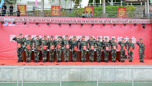 副校長劉勇在講話中指出,軍訓(xùn)不僅是技能的訓(xùn)練、體質(zhì)的增強(qiáng),更是對意志的磨練、能力的提升。在14天里,新生們同甘共苦、互幫互助、團(tuán)結(jié)合作,在艱苦的環(huán)境中磨礪自我、挑戰(zhàn)自我,這些經(jīng)歷是一筆寶貴的精神財(cái)富,能夠幫助新生們在將來的學(xué)習(xí)、生活中更有信心去迎戰(zhàn)困難、克服挫折,更有能力去適應(yīng)環(huán)境、成就自我。他希望新生們堅(jiān)持和發(fā)揚(yáng)在軍訓(xùn)中鍛造的思想品質(zhì)、鐵的紀(jì)律和永不言敗的奮斗精神,以飽滿的熱情投入到學(xué)習(xí)知識和學(xué)習(xí)做人的實(shí)踐中去,時(shí)刻牢記肩負(fù)的歷史責(zé)任與使命,努力成長為無愧于時(shí)代要求的有理想、有擔(dān)當(dāng)、有作為的合格大學(xué)生。