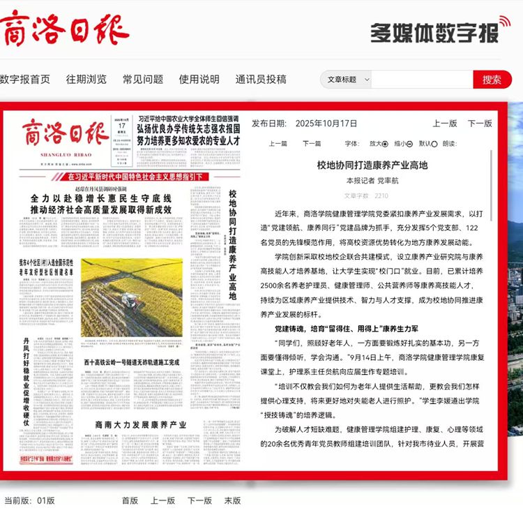 如今,從培育本土人才到攻堅(jiān)產(chǎn)業(yè)難題,從深耕科研轉(zhuǎn)化到服務(wù)基層民生,健康管理學(xué)院以“黨建紅”為引領(lǐng),以“康養(yǎng)綠”為底色,在秦嶺山間的養(yǎng)老院、企業(yè)車(chē)間、社區(qū)廣場(chǎng),都留下了校地協(xié)同推進(jìn)康養(yǎng)事業(yè)的扎實(shí)足跡。