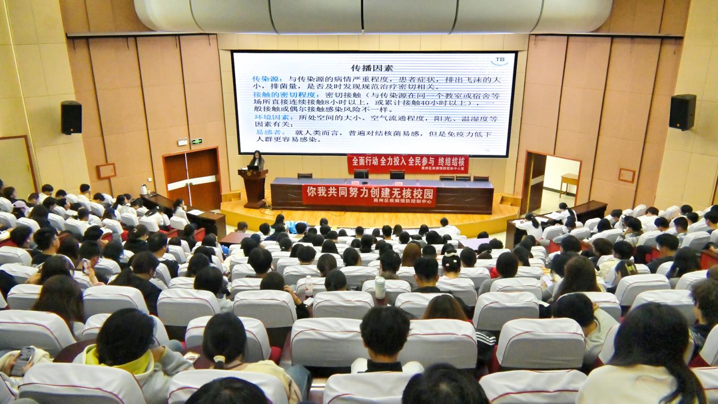為筑牢校園健康防線,10月15日下午,校醫(yī)院特邀請(qǐng)商州區(qū)疾控專家張曉榮來(lái)我校開(kāi)展結(jié)核病防控知識(shí)講座。2025級(jí)學(xué)生代表、新生輔導(dǎo)員、校醫(yī)院全體工作人員共550余人參加本次講座。校醫(yī)院院長(zhǎng)任秀梅主持講座。