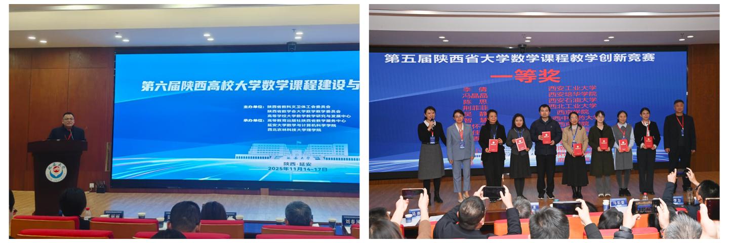 11月14日至16日,第六屆陜西高校大學(xué)數(shù)學(xué)課程建設(shè)與教學(xué)改革交流會(huì)在延安大學(xué)召開。數(shù)學(xué)與計(jì)算機(jī)應(yīng)用學(xué)院副院長程國、應(yīng)用數(shù)學(xué)系教師蔡昭、盧晶、楊燕一行4人參加了此次會(huì)議。會(huì)議分兩個(gè)階段進(jìn)行,程國主持大會(huì)第二階段報(bào)告。會(huì)議期間舉行了第五屆陜西省大學(xué)數(shù)學(xué)課程教學(xué)創(chuàng)新競(jìng)賽頒獎(jiǎng)儀式,我校教師楊燕榮獲一等獎(jiǎng)。在會(huì)議討論期間,我校教師就數(shù)學(xué)學(xué)科建設(shè)、課程思政、虛擬教研室建設(shè)、一流課程建設(shè)等方面和與會(huì)專家進(jìn)行了深入交流和探討。