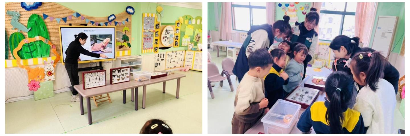 活動(dòng)中,李麗以“神秘的爬行動(dòng)物”為切入點(diǎn),通過(guò)生動(dòng)的語(yǔ)言和直觀的現(xiàn)場(chǎng)展示,向小朋友們介紹了蜥蜴的外形特征、生活習(xí)性和生存本領(lǐng)。在昆蟲(chóng)認(rèn)知環(huán)節(jié),李麗現(xiàn)場(chǎng)展示了包括蝴蝶、甲蟲(chóng)、蜻蜓等多種昆蟲(chóng)標(biāo)本,并引導(dǎo)小朋友們觀察標(biāo)本形態(tài)、解答相關(guān)問(wèn)題。小朋友們認(rèn)真觀察標(biāo)本、分享感受,現(xiàn)場(chǎng)互動(dòng)氛圍熱烈。